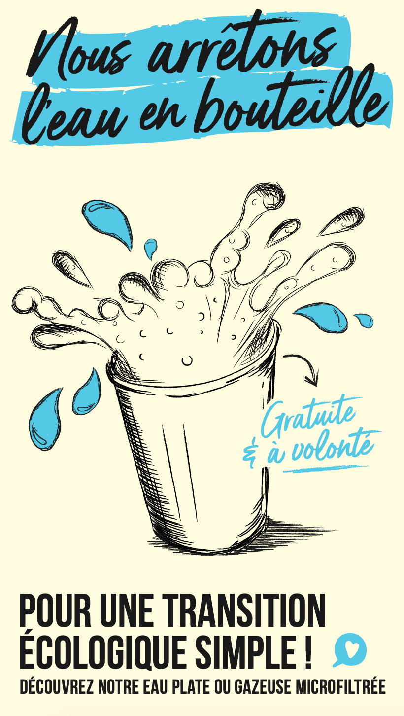 Pour continuer sur cette belle lancée, cette année, nous avons décidé d’arrêter la vente d’eau en bouteille plastique dans l’ensemble de nos restaurants.