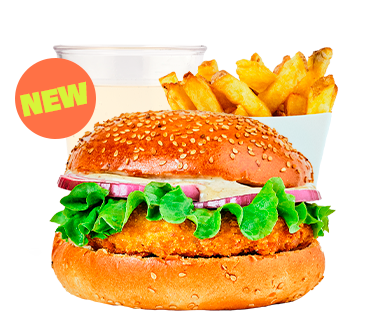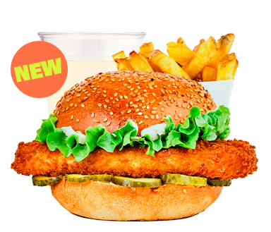 Pain BB légèrement brioché garni d’un pané de poulet, d’oignons rouges frais, de cornichons croquants accompagnés de moutarde et ketchup. *Ce burger est disponible en version double. *prix indicatif