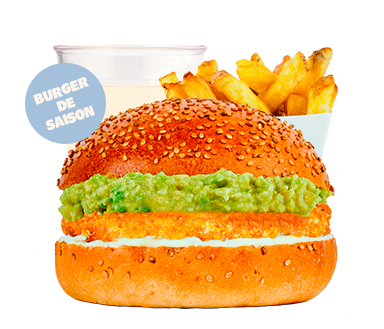 Crispy Avocado (Pain BB légèrement brioché garni d’un pané végétal, de guacamole fait maison, accompagnés de mayonnaise) + homemade side au choix + BB Drink *prix indicatif