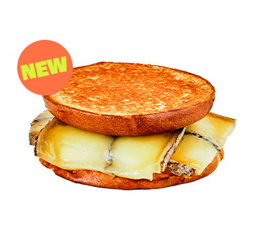 Munster (Pain BB légèrement brioché garni d’un steak de bœuf frais 100% pur bœuf, de 2 tranches de Munster AOP, de salade, d’oignons rouges frais accompagnés de mayonnaise et de…