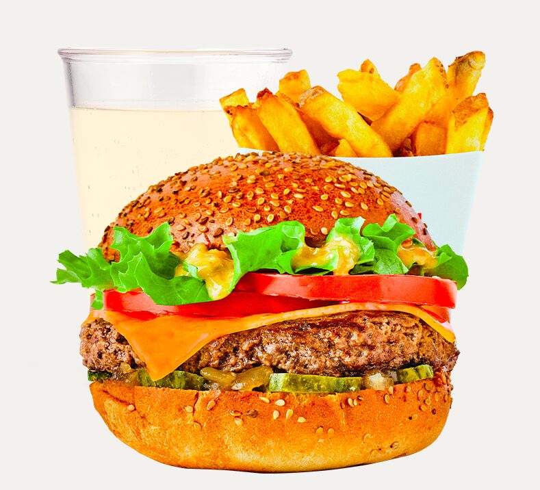 Original (Pain BB légèrement brioché garni d’un steak de bœuf frais 100% pur bœuf, d’une tranche de véritable Cheddar ou de gouda (selon arrivage), de salade, de confit d’oignons, de cornichons accompagnés de notre sauce classic BB) + homemade side au choix + BB Drink